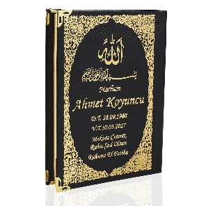 Altın Yaldız Baskılı Çanta Boy İsim Baskılı Ciltli Yasin Kitabı İsim Baskılı Ciltli Yasin` ler En Az "50 Adet" Olarak Satılmaktadır. Not: · Merhum ismi, doğum tarihi, vefat tarihi vb. kitap üzerinde yazılı olmasını istediğiniz bilgileri siparişinizi verirken sipariş notu kısmından veya bize mesaj yollayarak iletebilirsiniz. · İsim Baskılı Ciltli Yasin` ler Kişiye Özel Oldukları İçin İadeleri Kabul Edilmemektedir. Cilt Üzerine Yazılmasını İstediğiniz Örnekler Yazılar : · Merhum, Ahmet Sami, Ruhuna El Fatiha. · Merhume Fatma Bozkurt, Ruhuna El Fatiha · Hoş Geldin , Berra Bebek, 17. 01. 2017 · Mehmet & Ayşe ‘nin 2017 Yılı Umre Hatırasıdır. · Oğlumuz Talha’nın Sünnet Mevlidi Hatırasıdır. YASİN-İ ŞERİF ÜRÜN İÇERİĞİ : Temin Süresi : 3 iş Günü Boy : Çanta Boy Ebatı : 12 x 17 cm İçerik : Arapça, Türkçe, Meali Yazı Hattı : Çok Kolay okunabilen bilgisayar hattı ile yazıldı. Sayfa Sayısı : 128 Sayfa Sayfa Kalitesi : Lüks 1.Hamur Şamua Kağıt Kapak Kalitesi : İsim Yazılı Ciltli, Sert Kapaklı,Demir Köşeli Baskı Rengi : Renkli Baskı Fihrist : Var ÇANTA BOY 128 SAYFA ŞAMUA KAĞIT FİHRİSTLİ YASİN-İ ŞERİF İÇERİĞİ: 1-Kur’an okumaya başlarken okunacak dua 2-Fatiha süresi 3-Elif Lam Mim 4-Yasin süresi 5-Mülk (Tebareke) süresi 6-Nebe (Amme) süresi 7-Vakia süresi 8-Cuma süresi 9-Amenerrasülü 10-Ayetel Kürsi 11-Şehidallahu 12-İnşirah süresi 13-Asr süresi 14-Hümeze süresi 15-Fil süresi 16-Kureyş süresi 17-Maun süresi 18-Kevser süresi 19-Kafirun süresi 20-Nasr süresi 21-Tebbet süresi 22-İhlas süresi 23-Felak süresi 24-Nas süresi 25-Yasin duası 26-Salat-i Tefriciye 27-Salat-i Munciye (Tuncina) 28-Fetih Süresi |